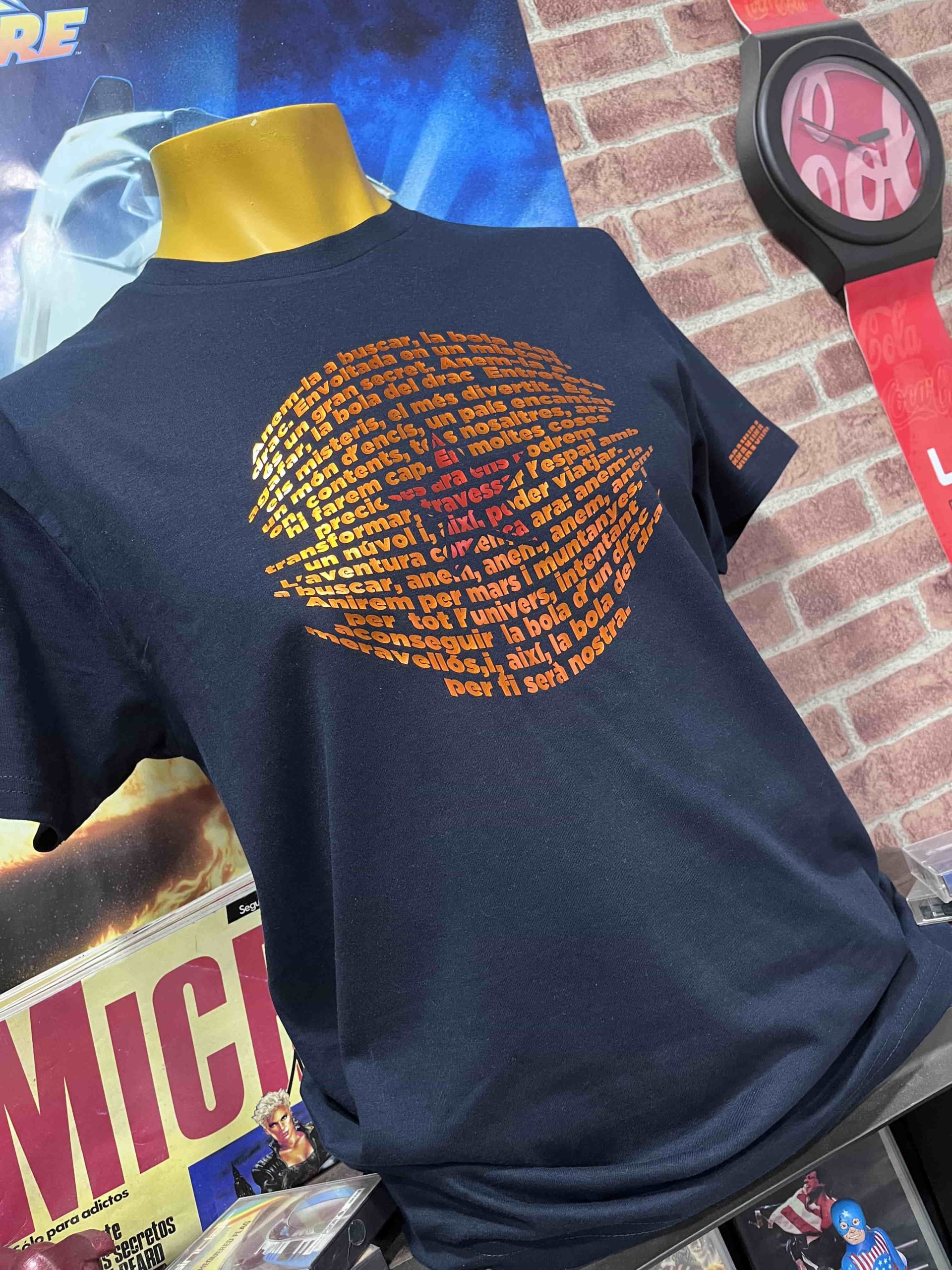 Con un lejos espectacular como los buenos cuadros y con un detalle tremendo de cerca: la letra en castellano de la canción del openig, una camiseta Karaoke irresistible de cantar.