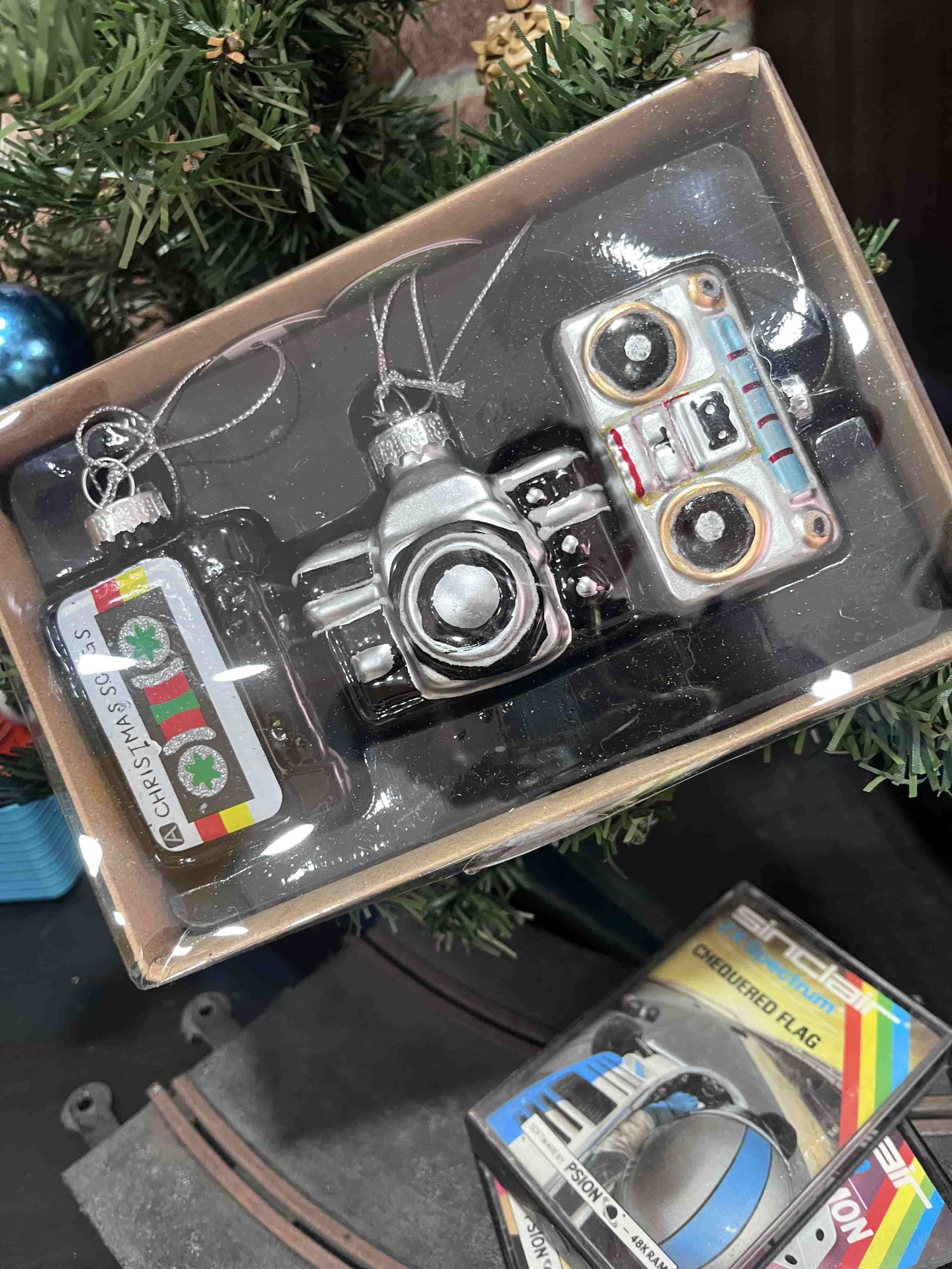 ¿Buscas algo diferente para tu árbol este año? Este pack de adornos navideños es un homenaje nostálgico a los años dorados del cassette, . Incluye tres piezas únicas: